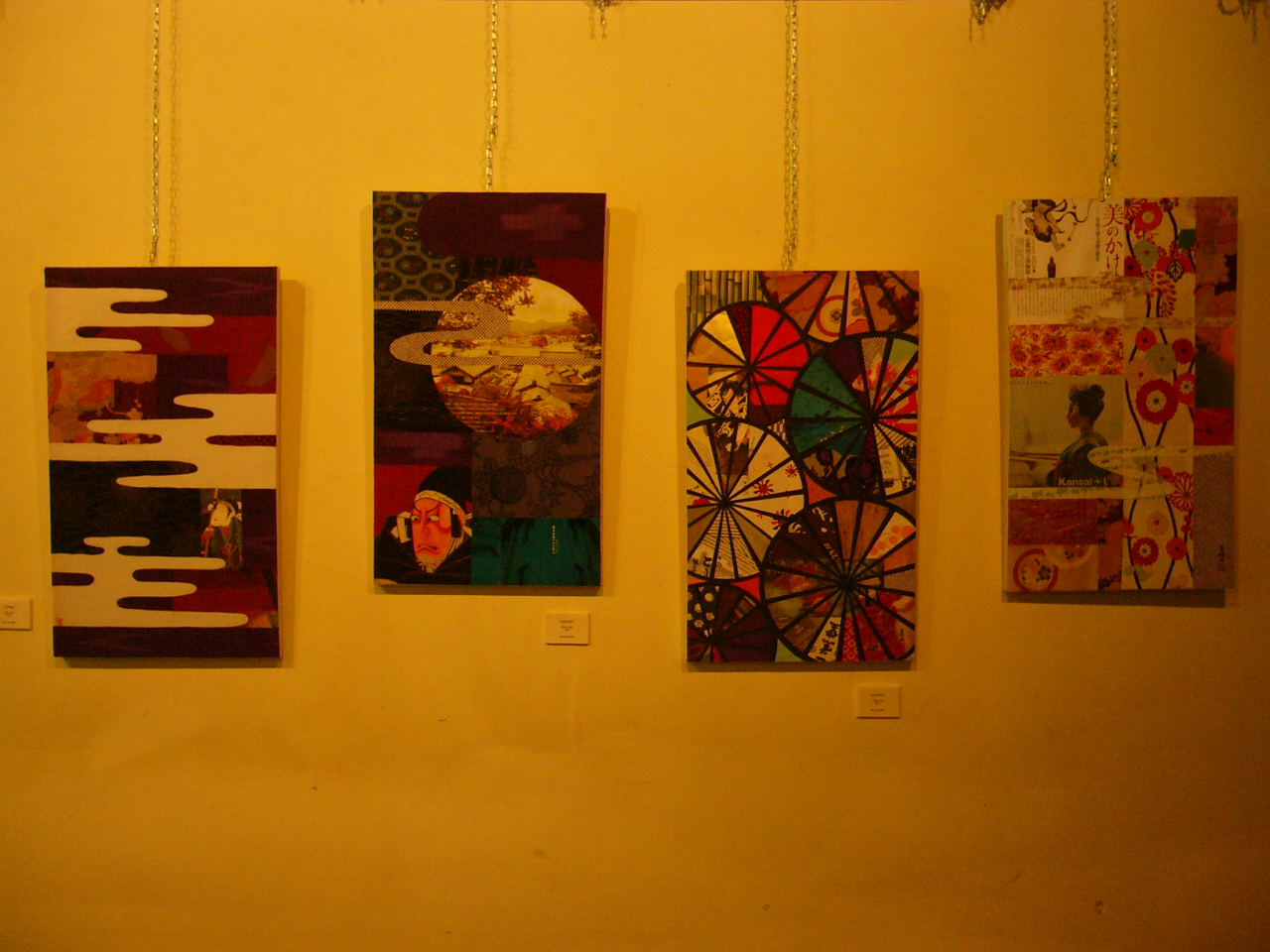 Contemporary oriental collage art made with only discarded paper and fabric that Rie finds on her journeys. It is her foot prints and shows her life stories.